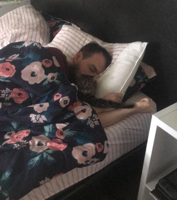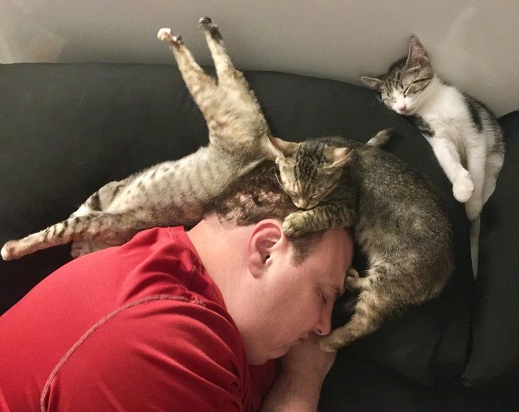 We love those touching moments when pets fall asleep with their humans, so we’ve collected 16 pictures of pets and humans sleeping together to share with you. What makes these pictures even more interesting are the unique places and poses that the pets choose when sleeping with their owners. Scroll down to see for yourself!