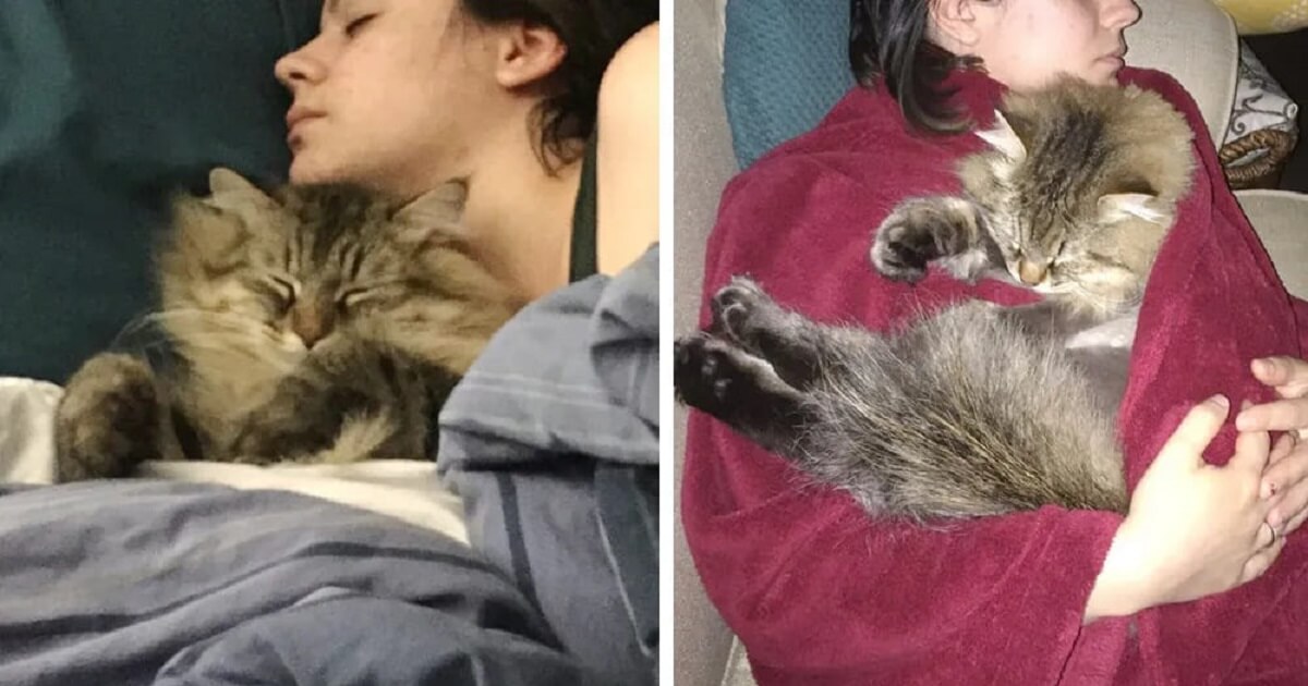 5. Despite hating physical contact most of the time, your cat still managed to take up your whole bed.