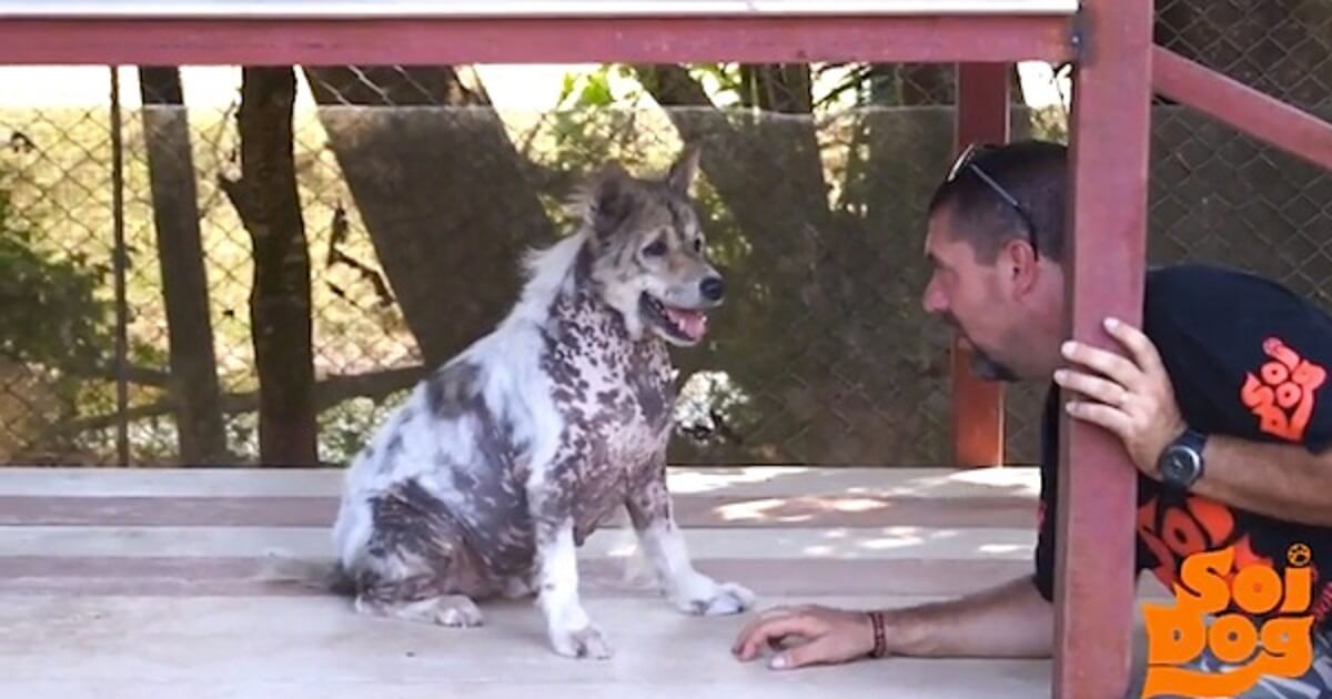 #13. “We gave him some meds because he’s scared of thunderstorms and this was how he sat.”