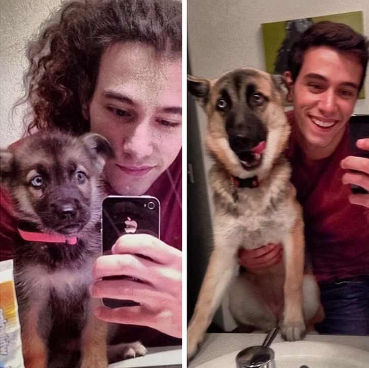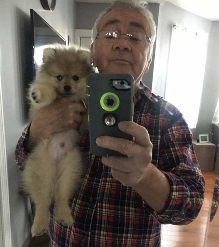 11. “Selfies with the grandpup, he didn’t want us to get another dog, now he takes care of him while we work.”