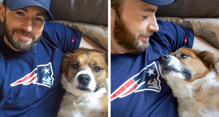 20. Chris Evans is a pro when it comes to taking selfies with his dog.