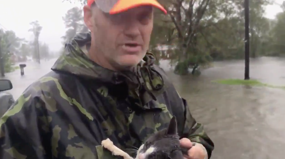 A local Jacksonville, North Carolina, reporter, Adriana Diaz, caught up with a pastor who was able to rescue several kittens and dogs. Animals in the ravaged floods left by Hurricane Florence were rescued.