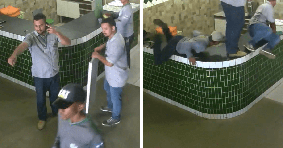 He seems to be in a cheerful mood as he does his craft with utmost finesse but just then the hole is filled with ocean water.