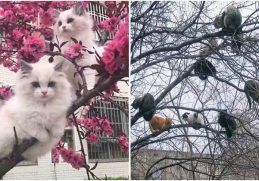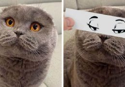 Guy Puts Funny Face Cutouts Over His Cats To Make Them Look Hilariously Emotional