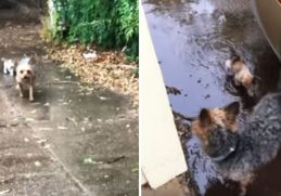 Sweet Dog Saves Tiny Abandoned Kitten And Brings Her Home In The Pouring Rain