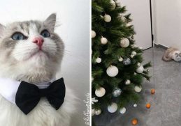 Cat Doesn’t Dare To Destroy Christmas Tree Because He Is Afraid Of Tangerines