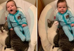 Cat Thinks Baby Bouncer Is His And Doesn’t Know Why Baby Keeps Trying To Use It