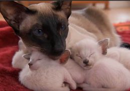 Protective First-Time Siamese Mom Looks After Her Cute And Curious Kittens