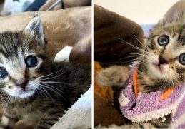 in Cats, Dogs, Rescue Rescue Pit Bull Falls In Love With Kitten And Spends His Whole Life To Care For Her