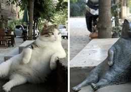Famous Cat Honored With His Own Statue At His Favorite Spot
