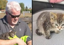 in Cats, Rescue Man Stops For Kitten Trembling In Road, Then Realizes Her Feet Are GLUED To The Ground
