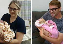 Single Guy Recreates His Twin Sister’s Baby Photos Using A Cat