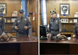 in Dogs Bulldog Loves Sticking His Head Through Holes In Fence, So His Owners Paint Funny Costumes On It