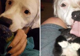 Sweet Dog Saves Tiny Abandoned Kitten And Brings Her Home In The Pouring Rain