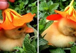 in Animals, Inspired A Video Of A Baby Duck Falling Asleep With A Flower Hat On Its Head Will Warm Up Your Soul