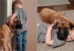 in Dogs, Family, Inspired English Mastiff Dog Accompanies His 3-Year-Old Friend During Timeout So He Won’t Feel Lonely