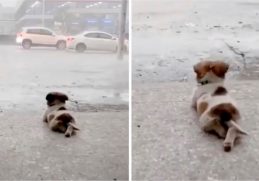 in Uncategorized Your Heart Will Melt After Watching This Cute Puppy Contemplate The Rain With His Crossed Legs