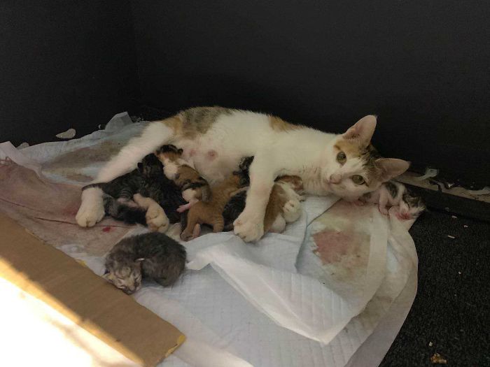 She sat outside the office building and meowed at people who passed by or walked in. “It’s like she was asking for help for her babies and herself,” Yvonne said.“