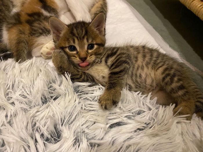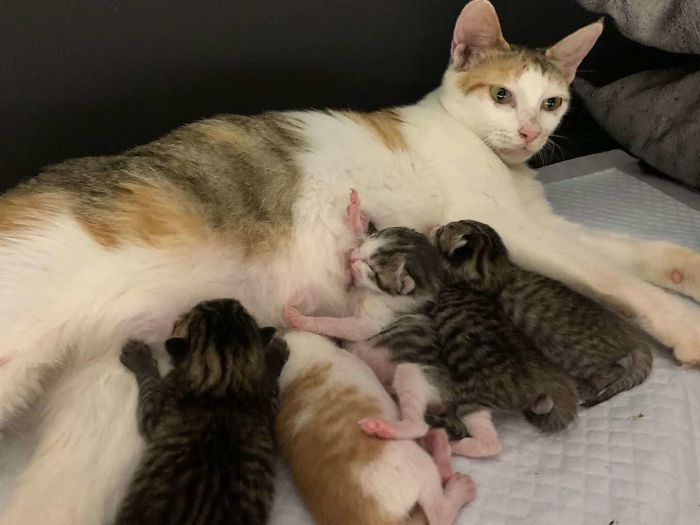 Luckily, Angela’s company had some cat owners who could give the pregnant mama some TLC to get her ready for her delivery date.