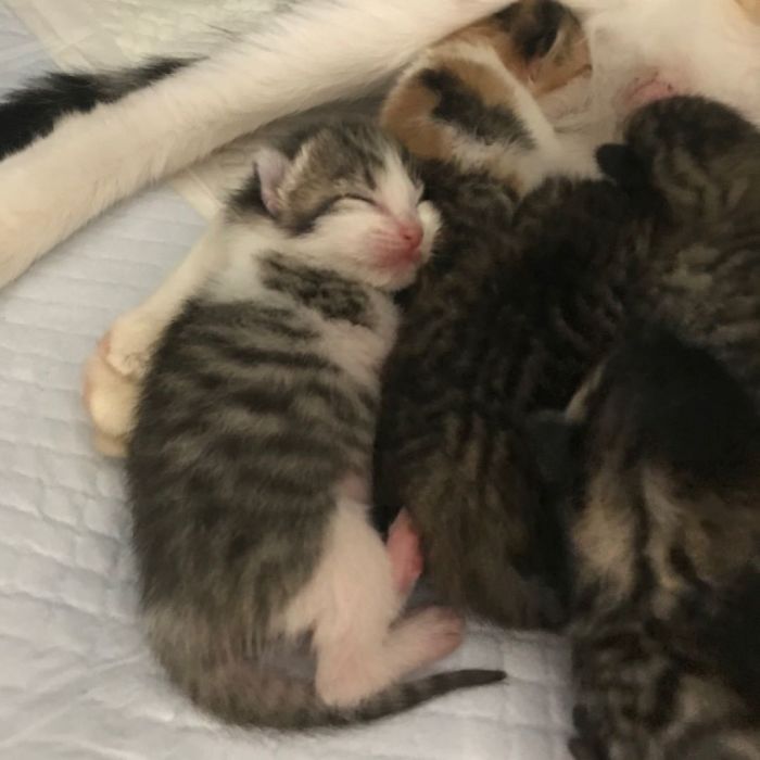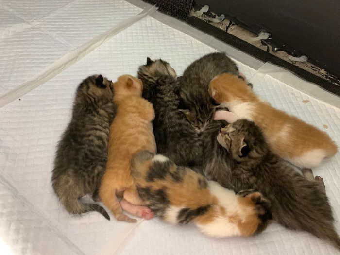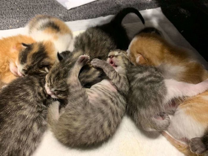 “There was a storm one night. When we came to work the next day, we found D-Day had arrived! Boba gave birth to eight kittens.”