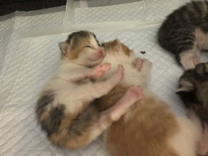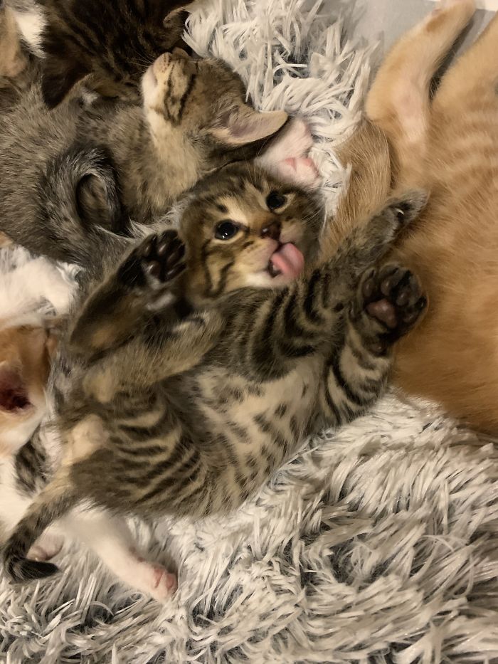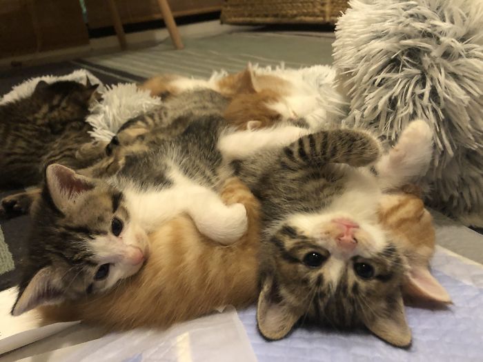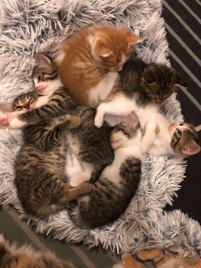 The full gang! At three weeks old, all of them had their eyes open and were so soft and round