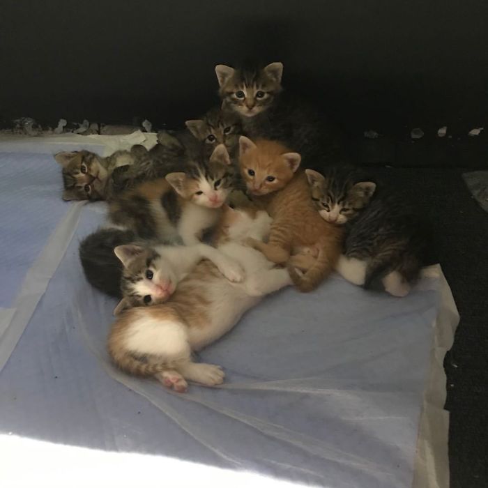 “When the kitties hit one month, we moved them to a bigger meeting room so they could all move freely”
