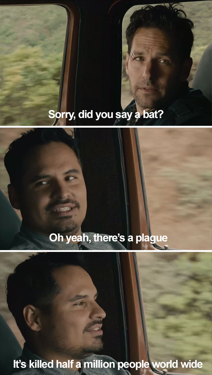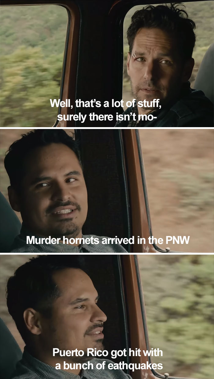 This summary is part of the “But I Got the Van” meme that stems from a memorable quote uttered by the character Luis in the 2015 Marvel superhero film Ant-Man. According to Know Your Meme, the meme is a multi-panel image macro comprised of screenshots of Luis reciting the dialogue. The scene became a fan favorite over the next year. Over time, the scene inspired a series of memes about optimism in the face of intense adversity.