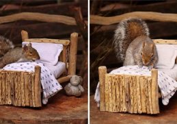 Woman Creates A Tiny Bed For Squirrels In Her Garden