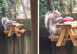 Man Builds Adorable Mini Picnic Table For Squirrels In His Backyard
