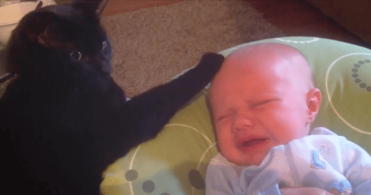 Mom Couldn’t Get Baby To Stop Crying In Her Crib, Now Watch When The Cat Puts His Paw Up
